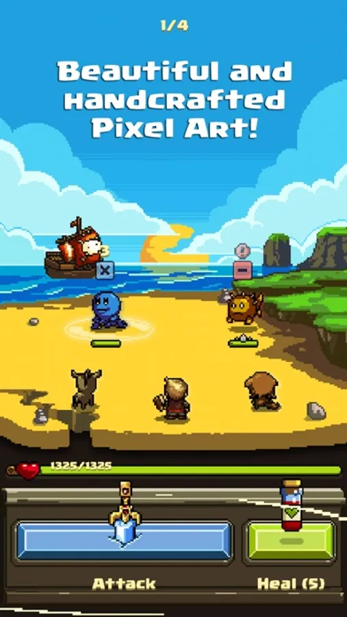 Explore 4 exciting areas with gorgeous hand-crafted pixel art.