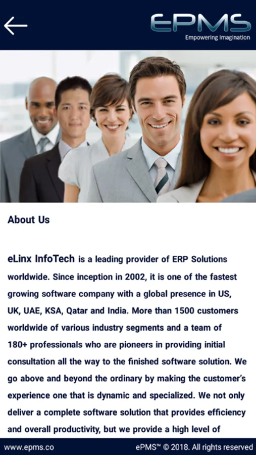 Elinx InfoTech is a leading provider of ERP Solutions worldwide. Since inception in 2002, it is one of the fastest-growing software company with a global presence in US, UK, UAE, KSA, Qatar and India. More than 1500 customers worldwide of various industry segments and a team of 180+ professionals who are pioneers in providing initial consultation all the way to the finished software solution. We go above and beyond the ordinary by making the customer's experience one that is dynamic and specialized. We not only deliver a complete software solution that provides efficiency and overall productivity, but we provide a high level of customization to help clients' achieve their goals.