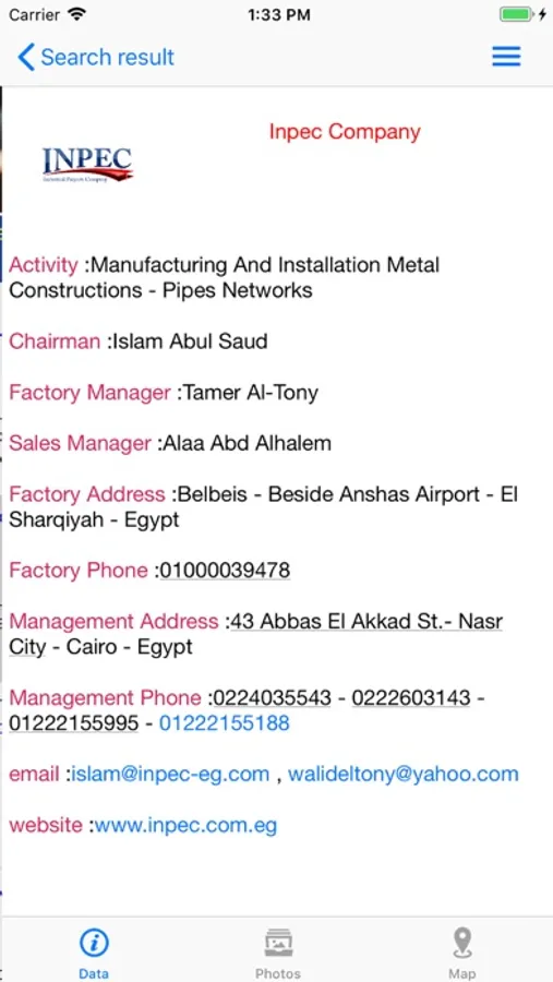 Contains the names of officials and decision-makers as Chairmen, Directors, marketing manager, sales manager, exporting manager, Etc...