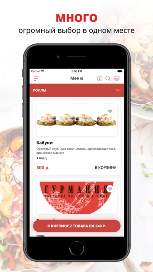 Компания Гурмания предлагает большой выбор вкуснейших роллов и суши, так же в нашем меню вы найдете, салаты, горячие блюда, и большой выбор сетов для любой компании.