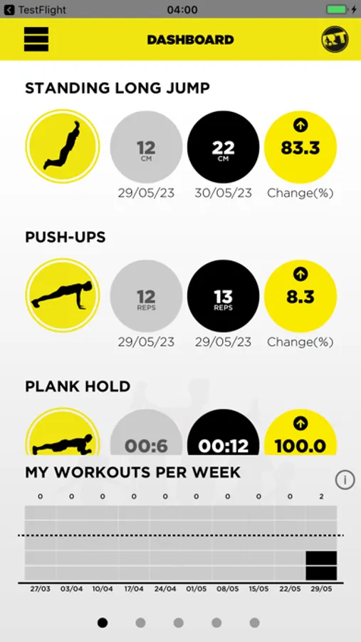 - View the dashboard display to see your past and current fitness levels and weekly progress toward your muscle-strengthening exercise goals