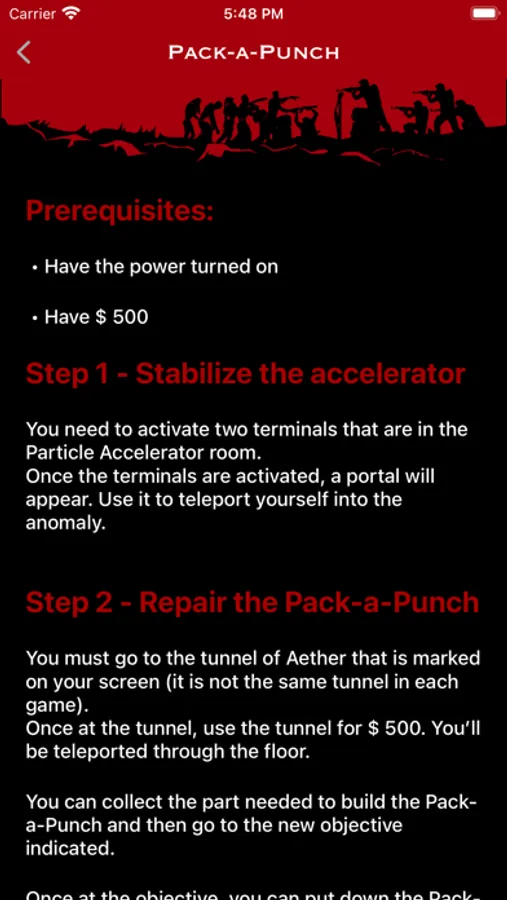 - Complete guides with photos of all available zombie maps