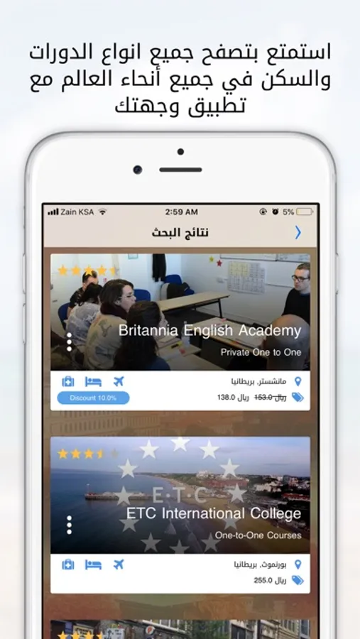 تطبيق وجهتك للدراسة في الخارج يقدم لك افضل عروض دراسة اللغات في الخارج. يوفر تطبيق وجهتك أيضا حجز السكن بجميع أنواعه للطلاب والطالبات مع جميع الخيارات الاخرى .