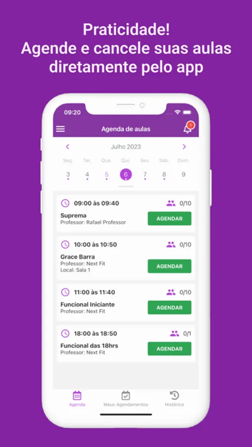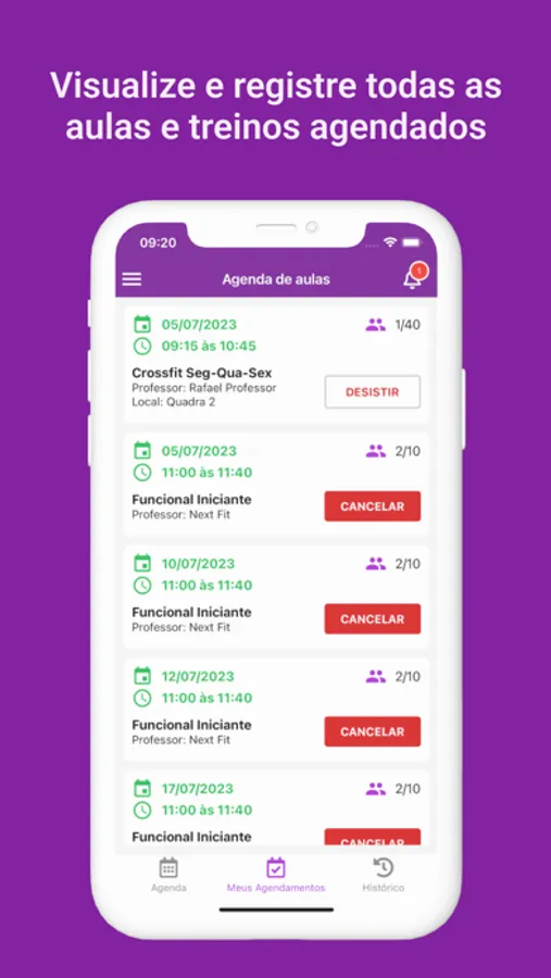 - Agendar, cancelar e visualizar o histórico de aulas.