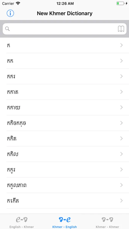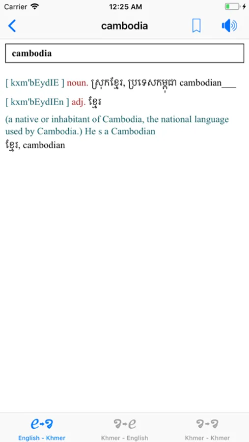 * 3 in 1 dictionary "English to Khmer", "Khmer to English" and "Khmer to Khmer"