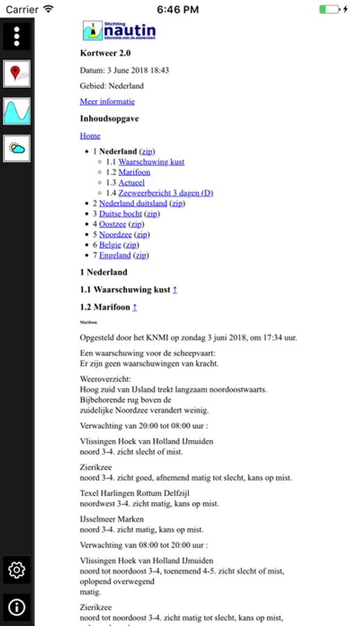 Mét actuele waterstandverwachting van RWS, het marifoonweerbericht, actuele stroomkaarten en meer.