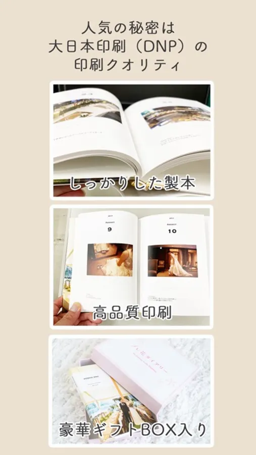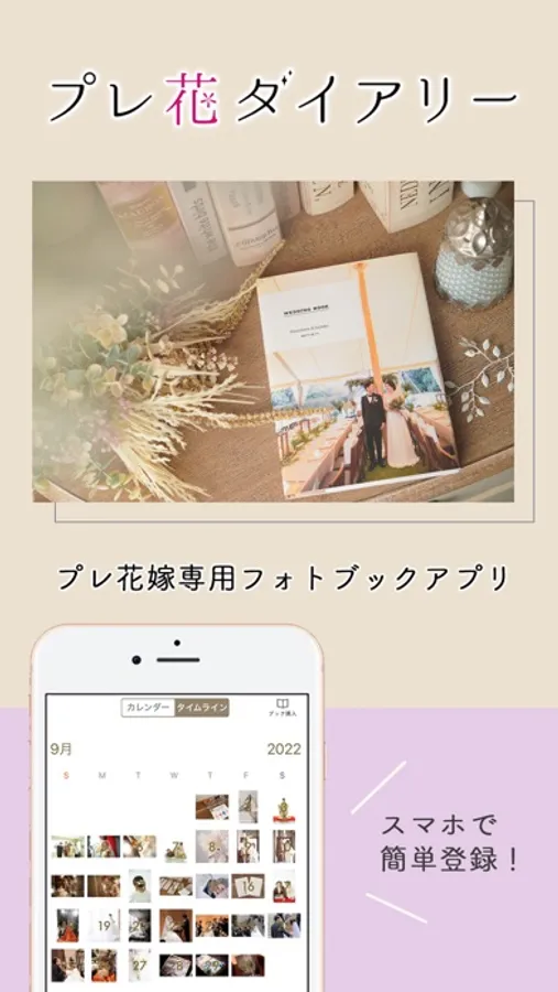 「プレ花ダイアリー」をダウンロードいただいてから30日間限定で、ブックをおとくに製本いただける「早割」画面にアクセス可能。