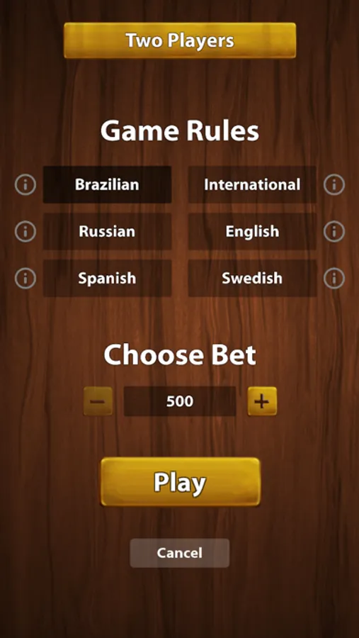 - Support 6 different rules of checkers: Brazilian, International, English, Russian, Spanish, Swedish Checkers