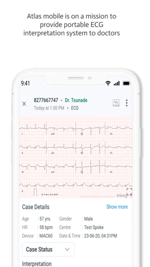 Atlas Mobile is a revolutionary application in cardiac care that allows doctors to diagnose ECG or Spirometry cases from any place at any time. Atlas Mobile is designed and developed to make the interpretation and analysis of an ECG quick and easy. Tricog's expert partner doctors, make use of the application for carrying out the interpretation and a detailed, digitally certified report is given to the patients helping in reducing the treatment time and saving critical lives.