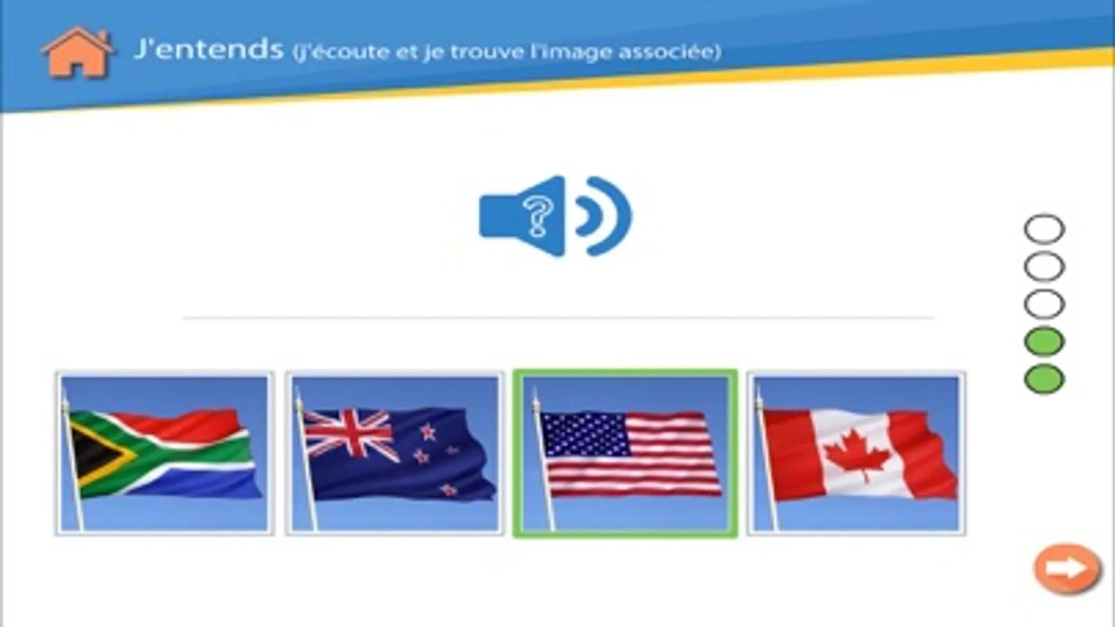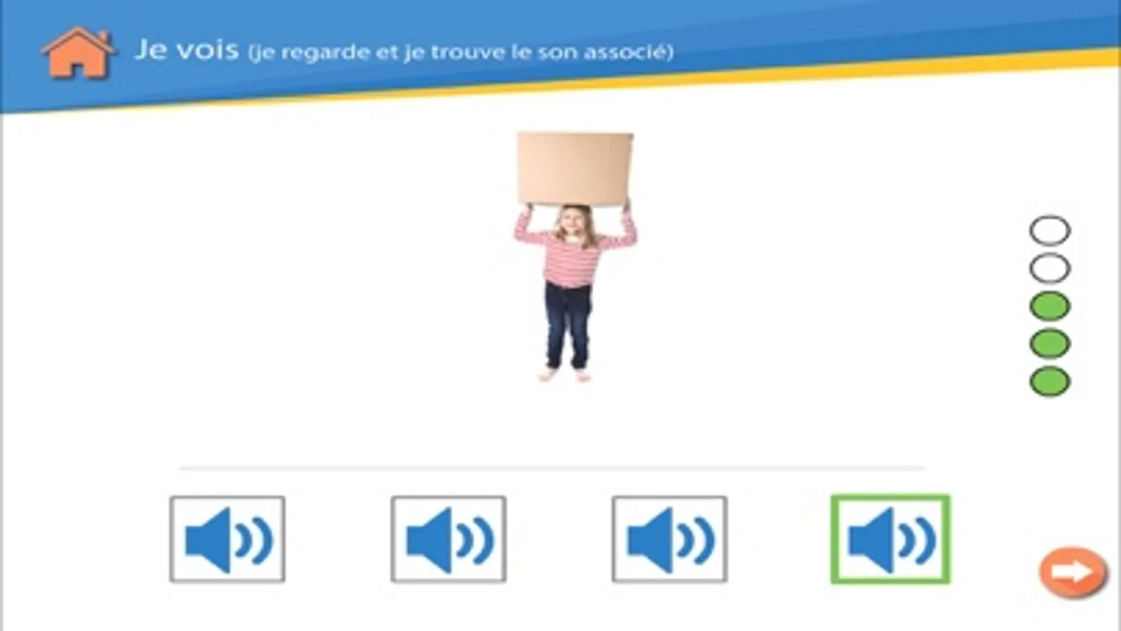 - Je vois : il cherche parmi quatre propositions l'expression orale associée à l'image affichée.