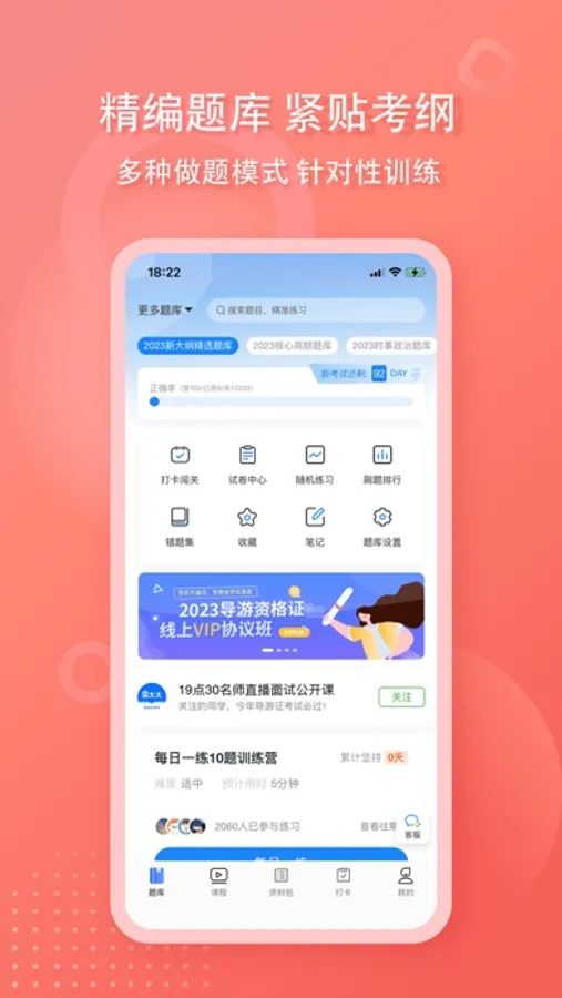 题库根据新大纲持续更新,包含2023新增考点。国内知名导游考试专业师资团队提供强力教研支持,自编试题及市面优质好题全收录、并配有解析详尽。