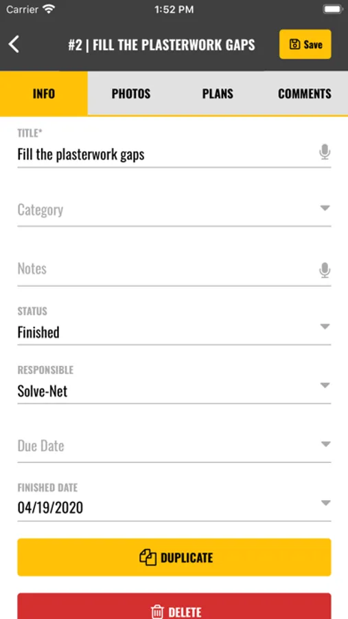With this app, you will easily, quickly and remotely generate punch lists from construction sites or when working in the field, delegate repairs of defects, assign tasks to team members and oversee building works.