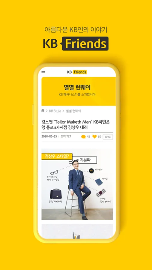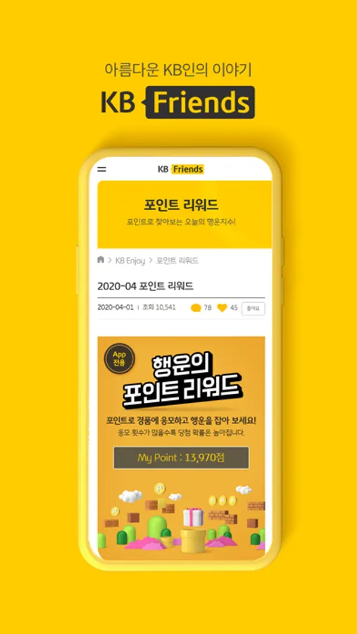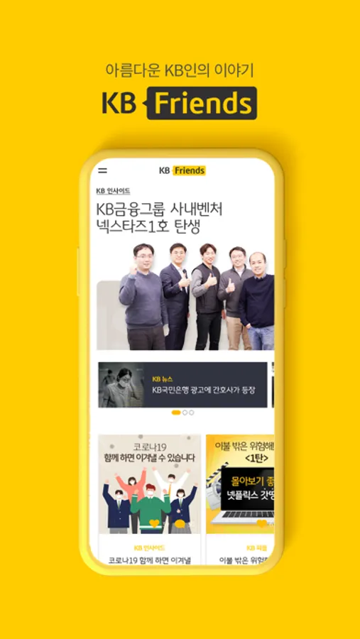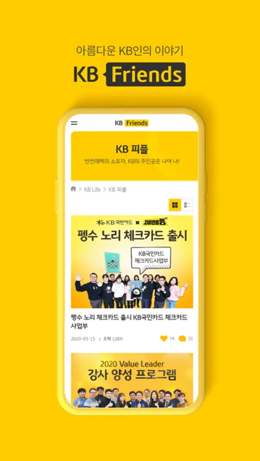 아름다운 KB인의 소통채널. KB Friends, KB 금융그룹 소식과 부점, 동료간의 소통을 쉽고 빠르게 이용하실 수 있습니다. KB 임직원의 이야기를 그려내고 재미와 힐링을 담은 모바일 어플리케이션입니다.