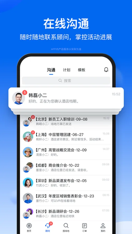 4.【专业顾问,全程跟进】找场地、查档期、看方案、定场地,会议顾问一对一全程跟进。