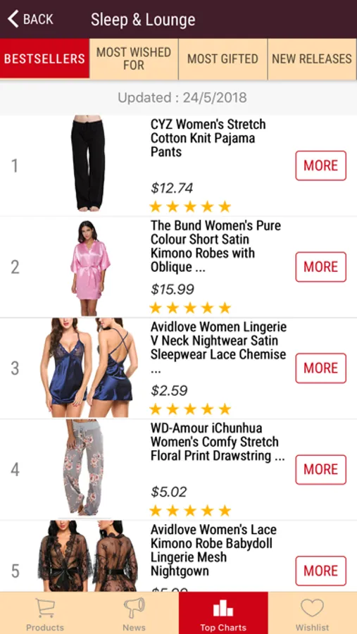 You have to check out our TOP CHARTS tab to find out what are the best, the most wished for or the most gifted products.