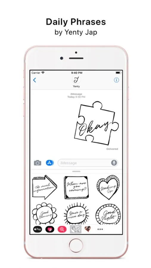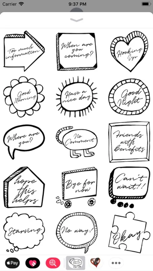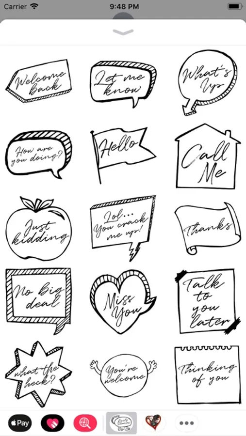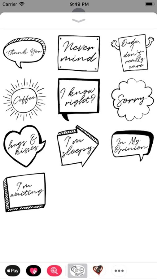 Make your text message more personal today, add those crafty feeling to the technology you are using with this iMessage Stickers pack that comes with funny, quirky drawing, and daily commonly used phrases.