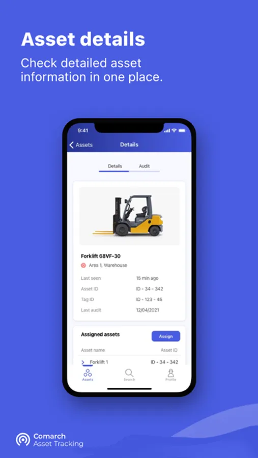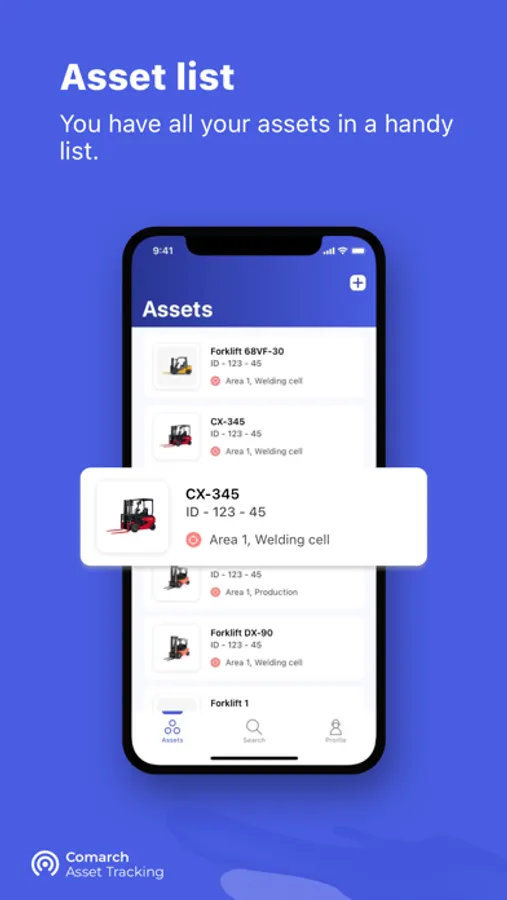 The app allows you to locate all movable assets on the map, assign dedicated trackers using QR codes and quickly display and change information about every item in the system. Additionally, our app can send you important notifications and alerts about tracked assets. This app is a part of Comarch Asset Tracking system, which consists of web and mobile applications, proprietary Comarch devices: UWB, BLE, UHF RFID trackers and IoT Gateways.