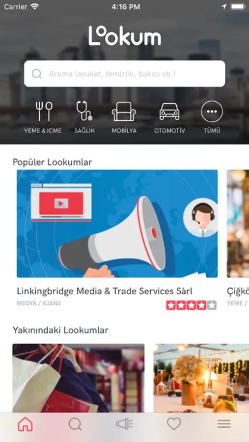 Türk marketlerinden kuaförlere, avukatlardan doktorlara, müzik gruplarından yaşam koçlarına kadar pek çok farklı sektörden yüzlerce firma Lookum’da seni bekliyor!