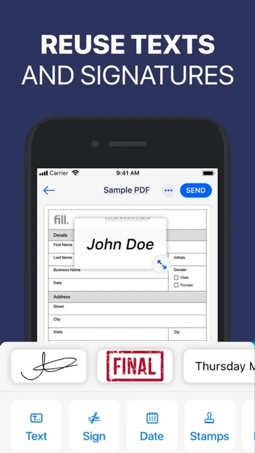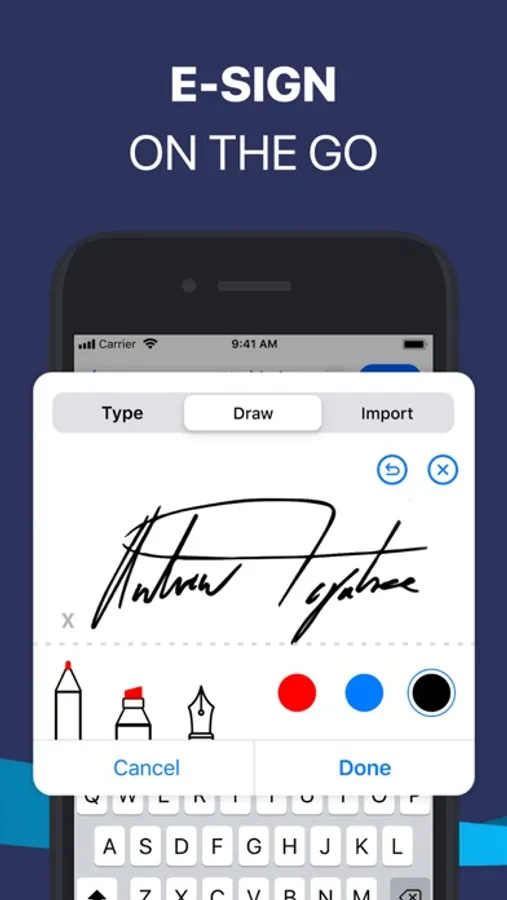 Fill out & digitally sign PDF forms & share files efficiently without a scanner! To sign; add initials, use the on-screen sign maker canvas, or simply import digital signatures on the app.