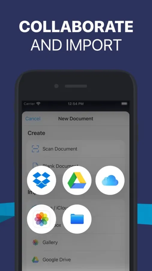 Easily upload documents from your desktop, iCloud, Dropbox, Google Drive, or Files