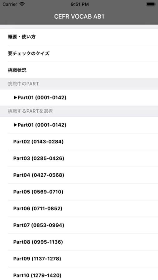 ・各パート或いは全てのパートの回答(挑戦)状況をクリアして繰り返し挑戦することができます。