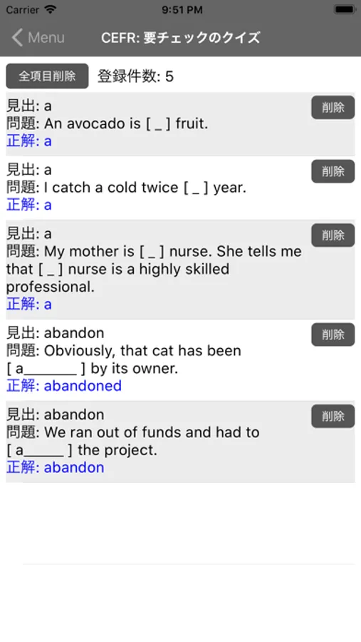・正答率が100%になるまで不正解やスキップした問題に繰り返し挑戦することができます。