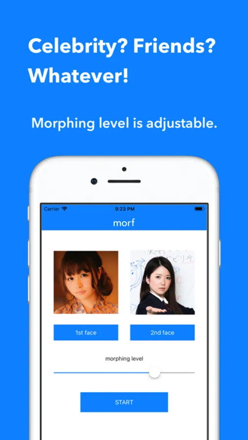Morf is the most amazing app for face changing. This app helps you how easily you mix your face into someone else faces, its totally a face fun app which creates face swap and gives you a new face. you can switch face as animal face, celebrity face, male to female face, female to male face and many more faces you can create with this app.