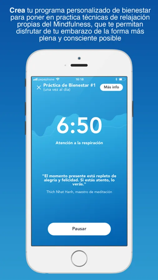 Cuidar el bienestar en el embarazo es bueno para ti y para el bebé. Una forma de lograrlo es a través de técnicas de relajación, como el Mindfulness. Gracias a la colaboración con el Instituto esMindfulness, hemos diseñado un plan de entrenamiento personalizado para familiarizarte con esta herramienta. Son 10 sesiones de audio a lo largo de 10 semanas. Está comprobado que además de mejorar tu estado anímico tiene beneficios para el bebé, previniendo complicaciones y favoreciendo su desarrollo.