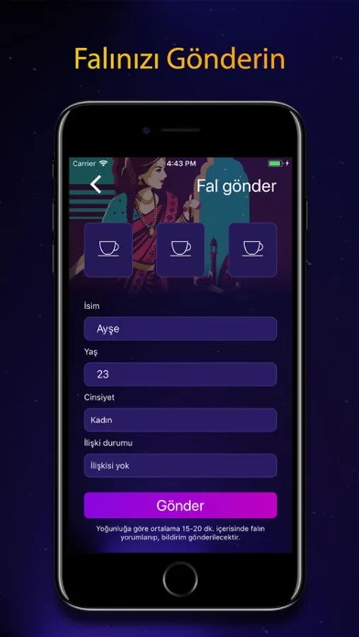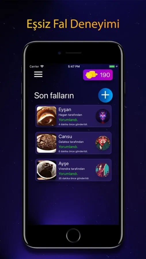 • Tek yapmanız gereken kahvenizi içtikten sonra fincanınızın fotoğraflarını düzgün bir şekilde çekip fal baktırma ekranına yüklemek daha sonra uygulamada fal baktır kısmında gerekli bilgileri doldurduktan sonra bize göndermeniz!