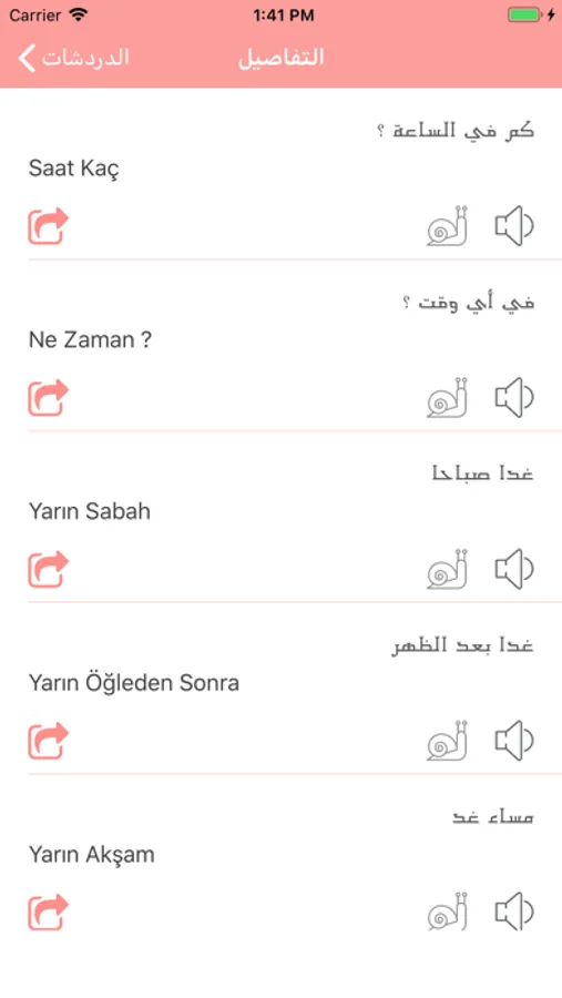 هذا التطبيق يحتوي على أهم الكلمات في اللغة التركية وأشهر الدردشات باللغة التركية مترجمة إلى اللغة العربية مع طريقة نُطقها وإمكانية العرض البطيئ.