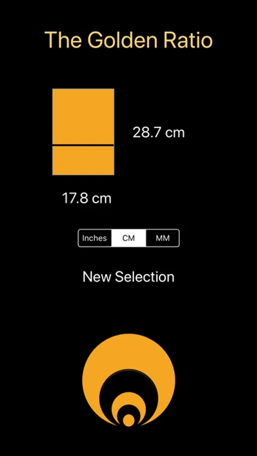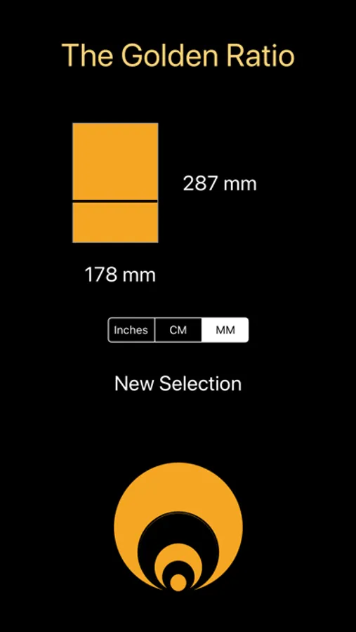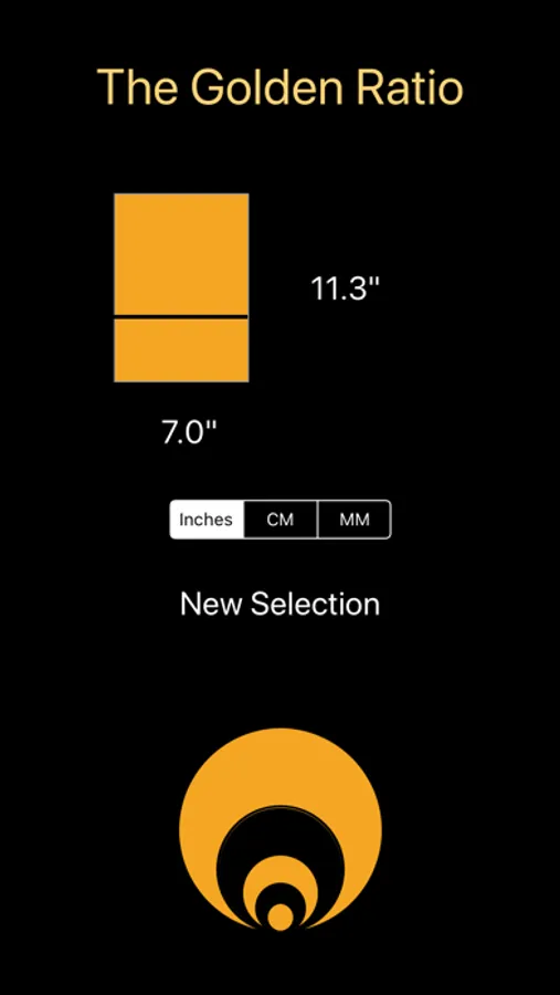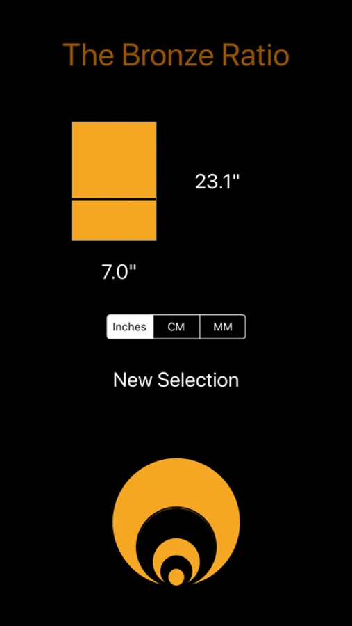 This app is straightforward. Select which ratio you would like: Golden, Silver, or Bronze (there are others, these ratios are the most used). Provide the known dimension, either the short side or long side, and press calculate, and the app will provide the other proportion of the ratio you have selected.