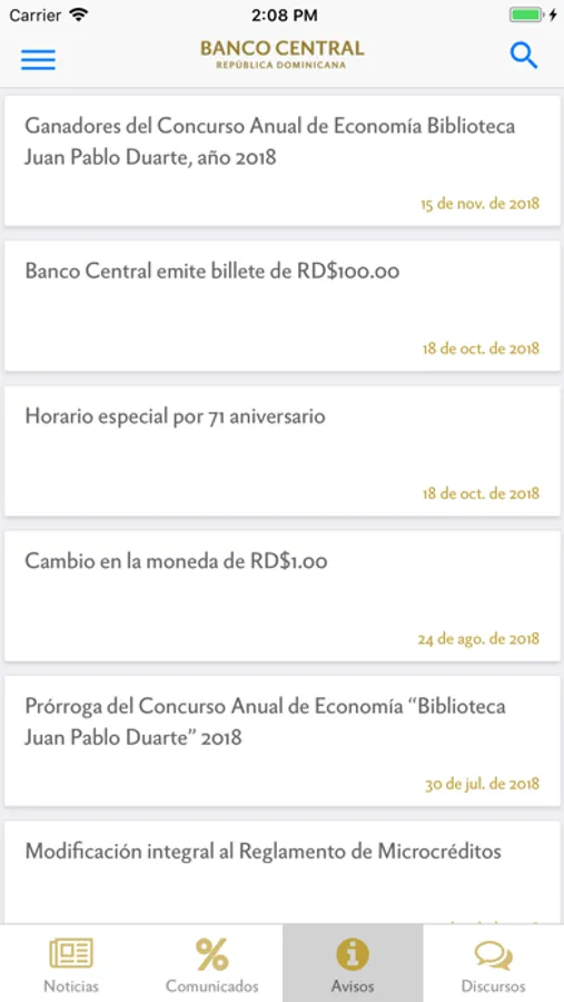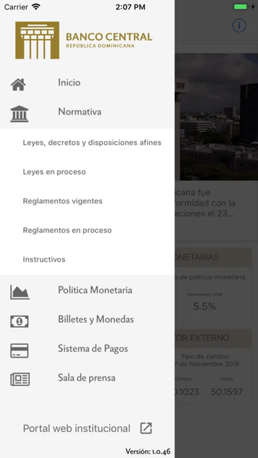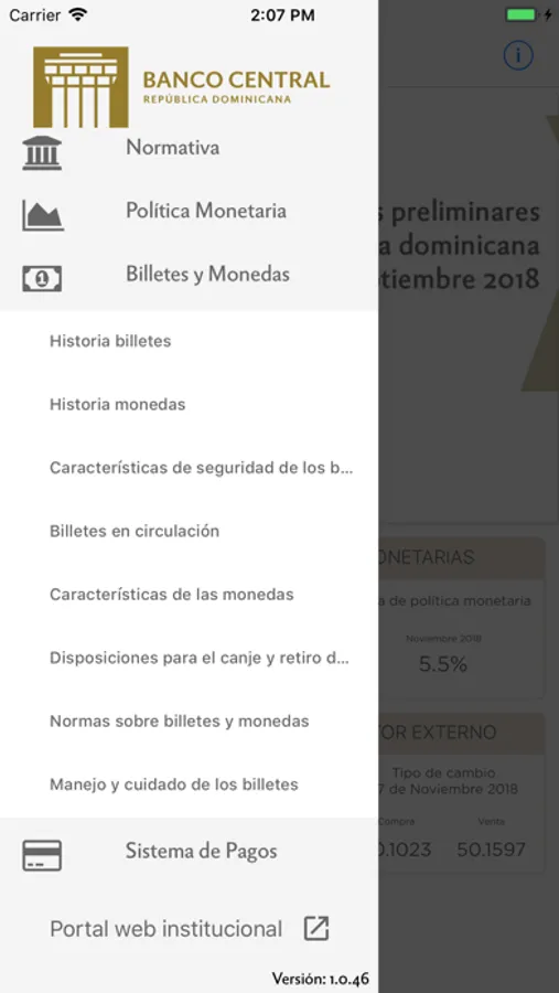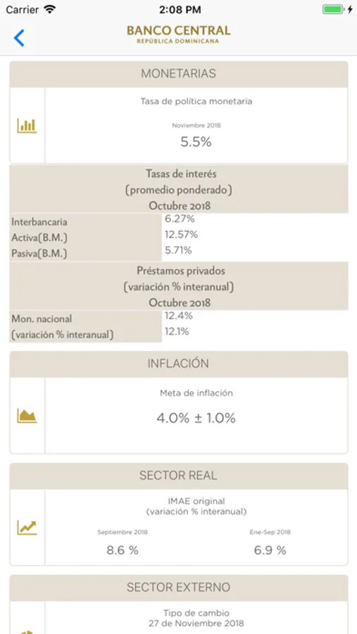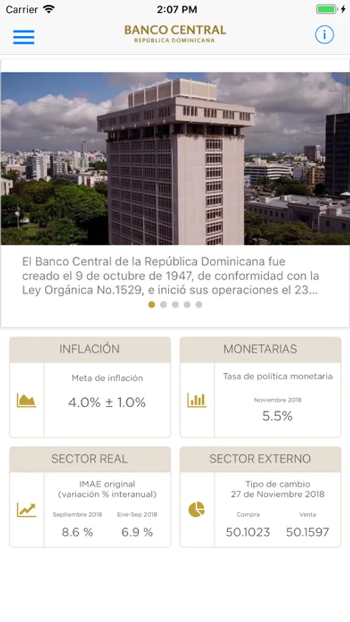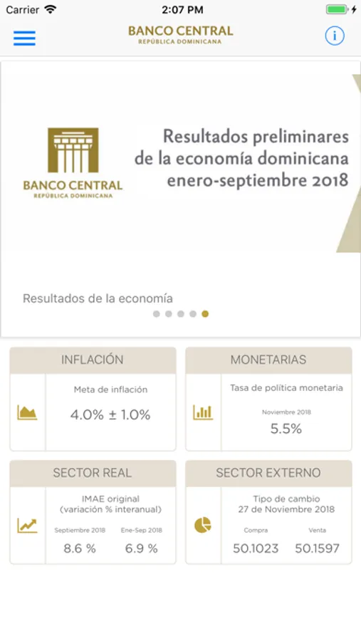 Esta aplicación permite consultar los principales indicadores macroeconómicos y la política monetaria, novedades y noticias, informaciones del sistema de pago, billetes y monedas, así como los documentos y normativas vigentes publicados por el Banco Central de la República Dominicana.