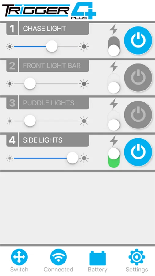 Control power and dimming functions as well as a strobe feature when used with LED or conventional lighting. It is simple to set up and allows for user customization. Use the app to “Trigger” lights from outside the vehicle whenever you might need to activate an accessory on demand.