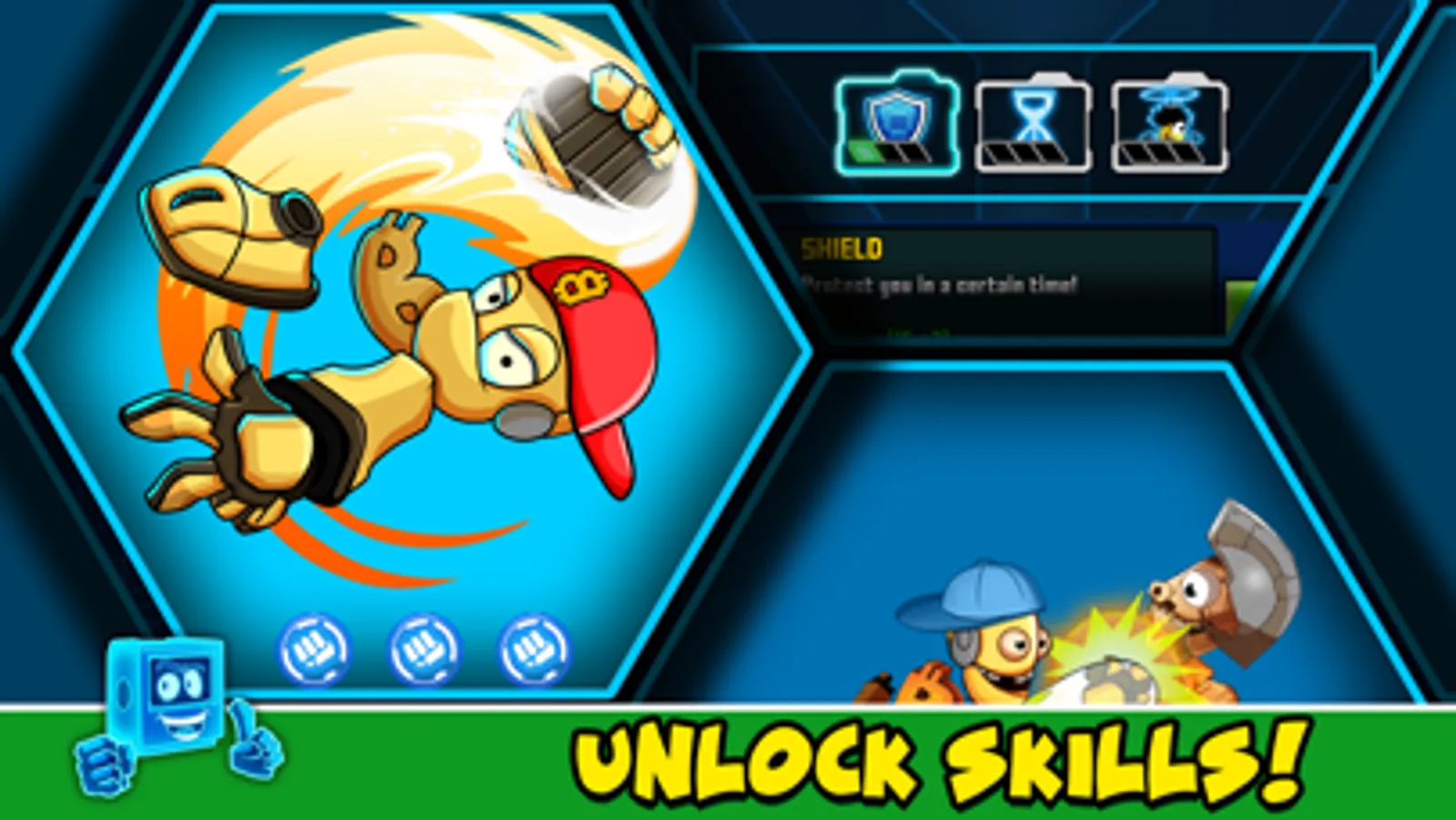 Do not forget to break the boxes during the journey of the funny game to get gifts or collects coins. Then let’s use it to upgrade your skills and weapons in the store or use the credit card instead. The more powerful you are, the easier to kill the boss and pass the skullduggery.