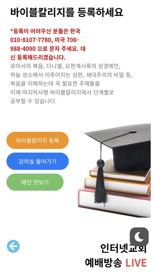 환영합니다. 마지막사명 앱을 다운받고 바이블칼리지에 들어가시면 성경의 기초부터 다니엘서와 요한계시록의 예언, 로마서 연구, 사람의 사후세계와 지옥에 대한 진실 등 성경의 중요한 주제들을 체계적으로 공부할 수 있습니다. 또 성경공부 책자 [파워북] 시리즈 전체를 볼 수 있으며, 매주 앤드류강 목사님의 새로운 말씀을 올려드립니다. 찾아주셔서 감사합니다.