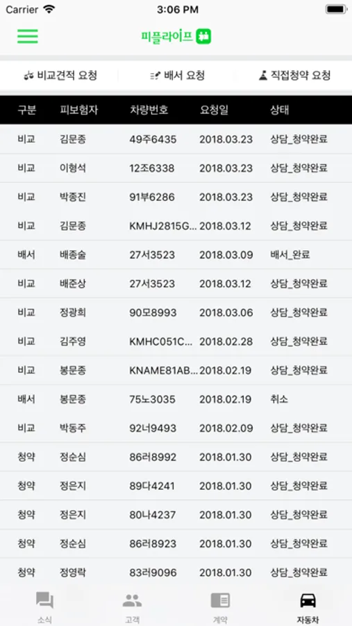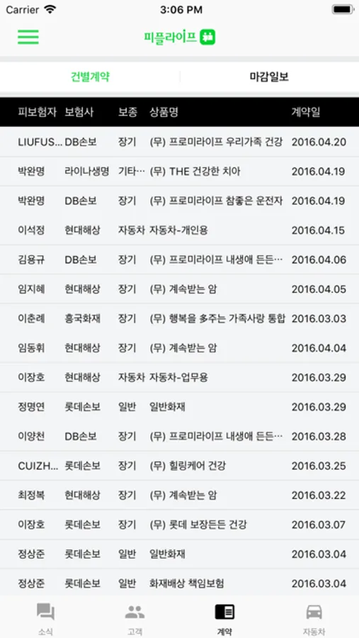 보험 판매를 위한 영업관리 모바일 시스템 ‘파인즈 모바일’ 입니다.