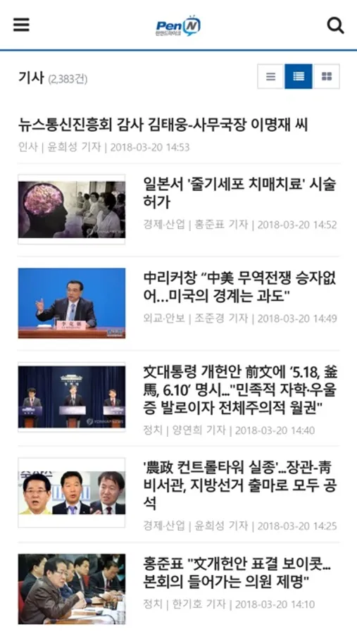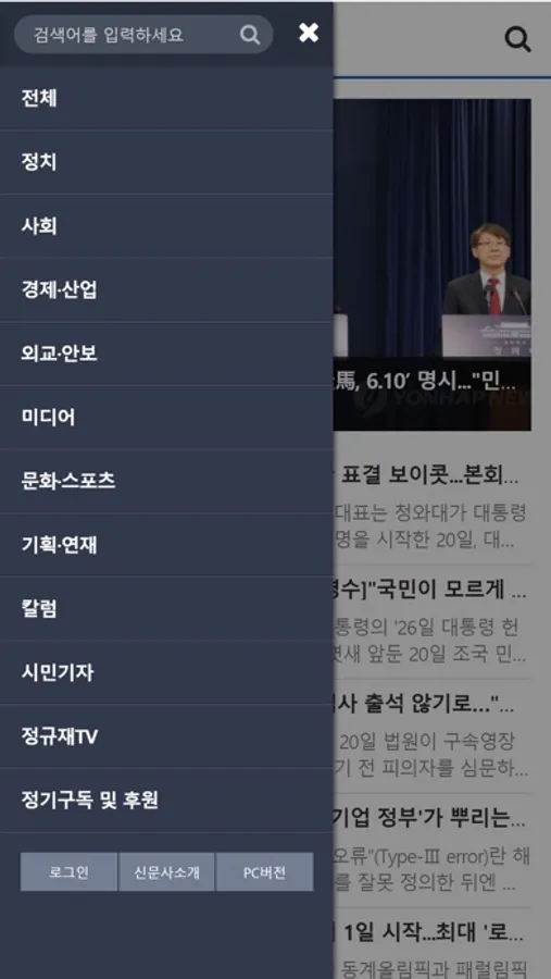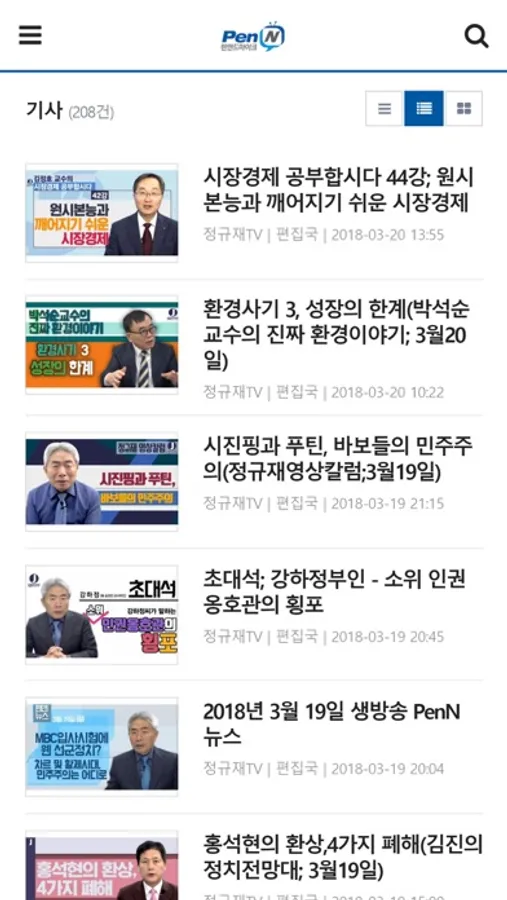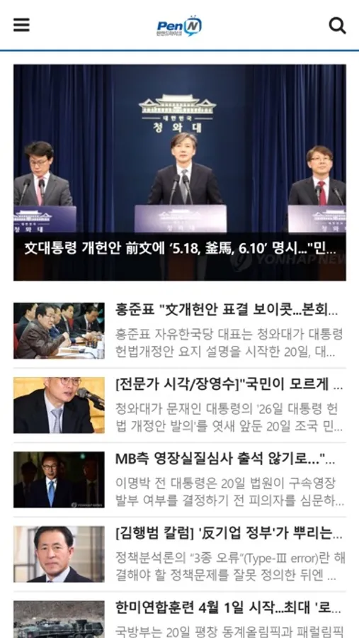 펜앤드마이크(펜앤, PenN) 뉴스앱은 종합, 정치, 사회, 경제·산업, 외교·안보, 미디어, 문화·스포츠, 기획·연재, 칼럼, 정규재TV 섹션으로 구성돼 있습니다.