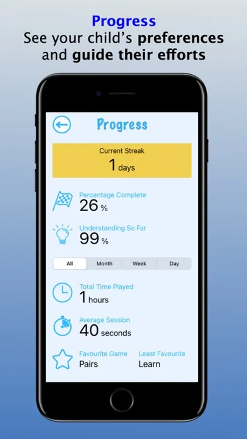4 games and learning modules gradually challenge your child to build their skills, rewarding them with sounds and video clips.