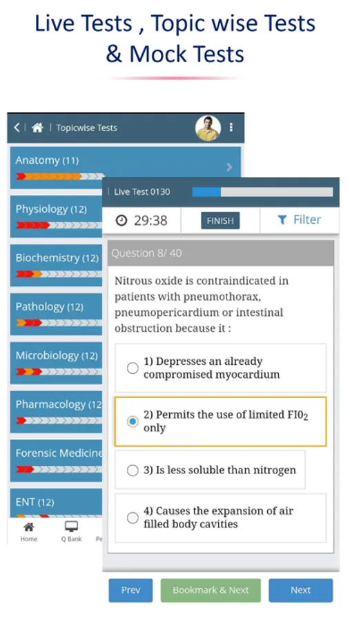c) 250+ Topicwise Tests (Topics Covered: Anatomy, Physiology, Biochemistry, Pathology, Microbiology, Pharmacology, Forensic Medicine & Technology, ENT, Preventive & Social Medicine, Opthalmology, Medicine, Surgery, Obstetrics, Gynaecology, Orthopaedics, Paediatrics, Skin, Anaesthesia, Radiology, Psychiatry).