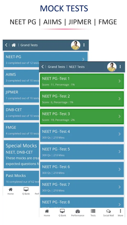 b) 100+ Mock Tests for NEET PG, AIIMS, JIPMER, PGI, DNBCET, FMGE.