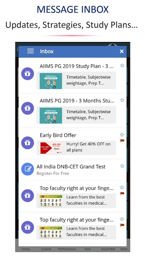 45,000+Practice MCQs,Image Based MCQs, High yield MCQs, Daily Free Tests, Topicwise Tests, Grand Tests, Topicwise Videos, Performance Analysis, All India Ranking, Socialwall, Blogs.