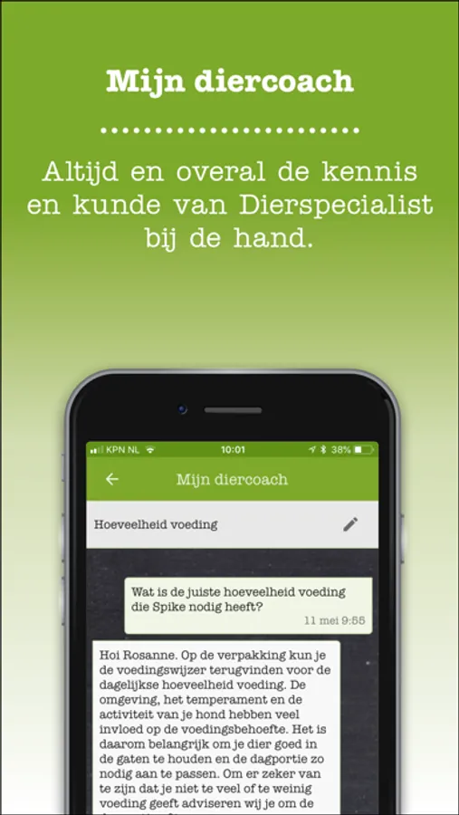 Jouw Dierspecialist nu altijd bij de hand! Bij Dierspecialist staan we voor service en oprechte liefde voor huisdieren. Zelfs na sluitingstijd met de Dierspecialist App! Spaar bij iedere aankoop voor korting, ontvang persoonlijke aanbiedingen, stel je vragen via de chat en meld je aan voor een gratis gezondheidscheck voor jouw huisdier. Benieuwd wat de Dierspecialist App nog meer te bieden heeft voor jouw huisdier? Download hem nu, registreer jezelf en ontvang 25 spaarpunten cadeau!