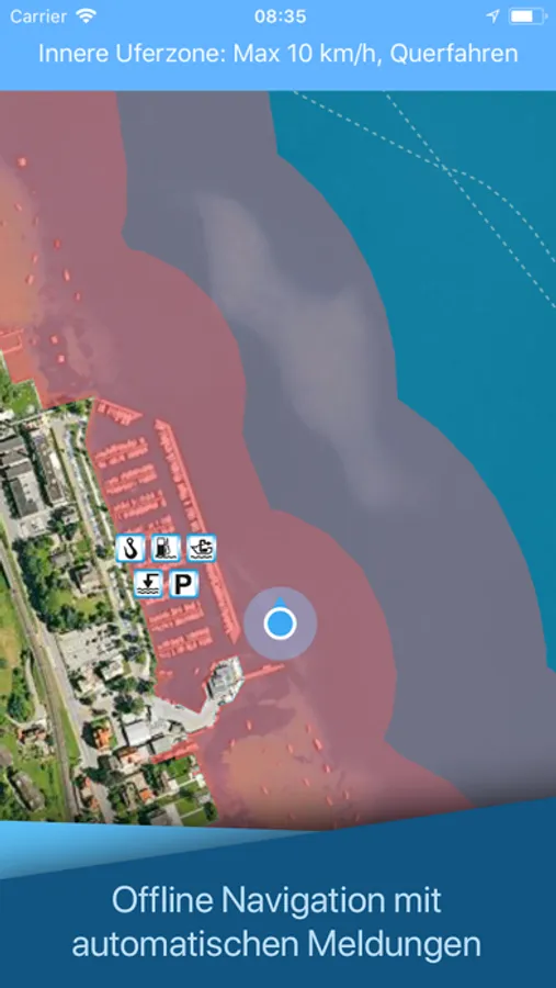 • Uferzonen mit Geschwindigkeitslimit, Hinweis bei Überschreitung