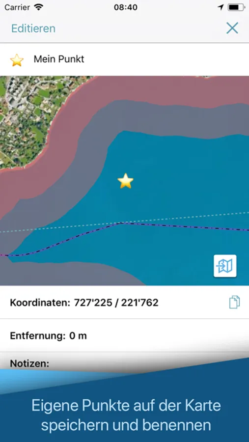 • Eigene Punkte auf der Karte speichern und mit Notizen versehen