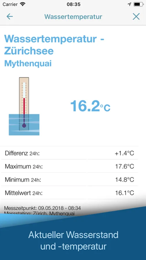 • Aktueller Wasserstand und aktuelle Wassertemperatur