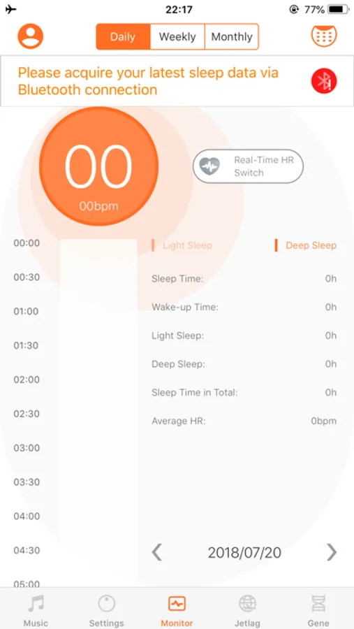 Track your sleep: Sleep time and heart rate recorded and displayed daily, weekly and monthly.