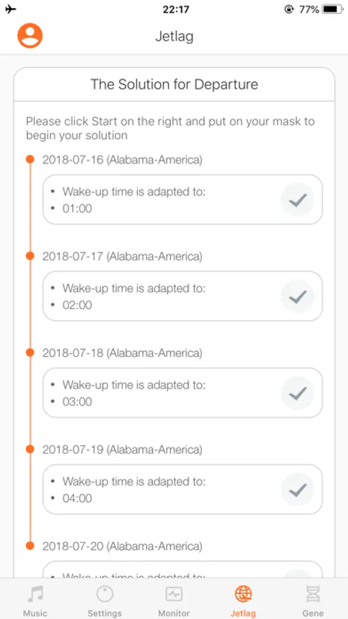 Lessen jet lag: Dreamlight uses algorithm to calculate the best sleep plan for travel, provided with melatonin-regulating lighting therapy on time to help users arrive rested.