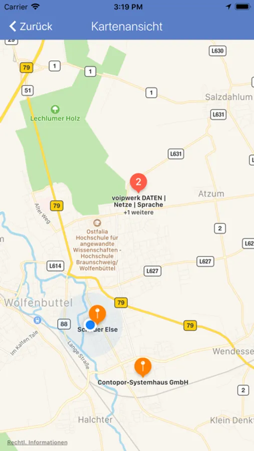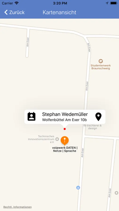 Als zusätzliches Feature können Sie sich direkt die Route zu dem Standort des Kontaktes anzeigen lassen und diesen dadurch jederzeit mobil erreichen, ohne erst die Adresse raussuchen zu müssen oder ein Navigationssystem zu bemühen.