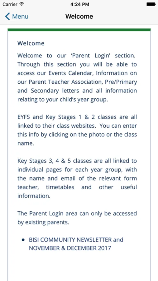 This app includes the enquiry form, maps, contact details and school news. It is also for current parents to see Events Calendar, PTA Page, Announcements, Pre/Primary and Secondary Letters, the pages of EYFS and Key Stages.