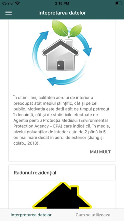Smart Radon este o aplicație mobilă folosită pentru vizualizarea datelor primite de la senzorii echipamentelor de monitorizare. Scopul aplicației este acela de a permite vizualizarea datelor, statisticilor și a hărții corespunzătoare valorilor măsurate.